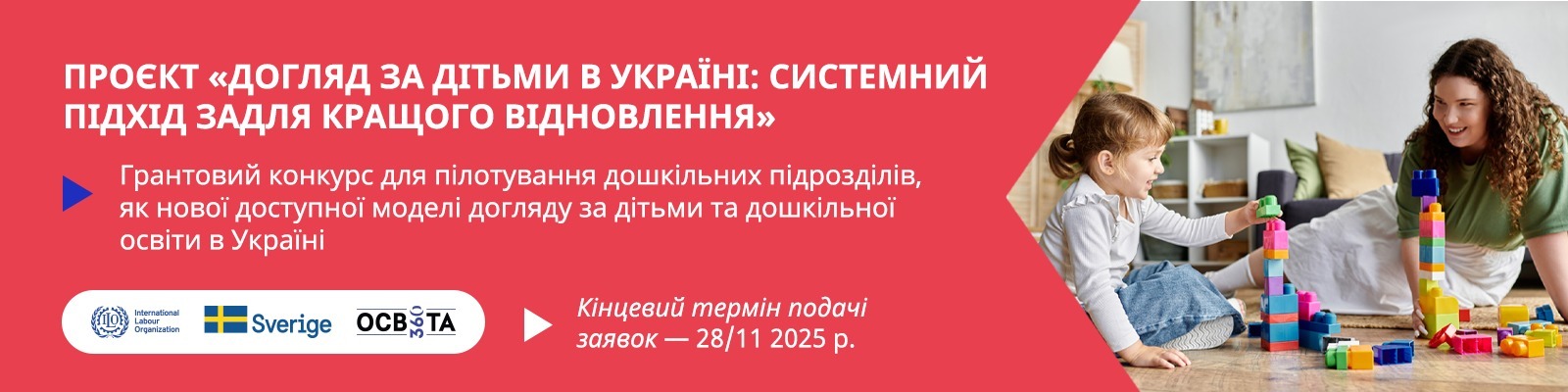 Проєкт “Догляд за дітьми в Україні: Системний підхід задля кращого відновлення” впроваджується офісом Міжнародної організації праці (МОП) в Україні за фінансування Шведського агентства міжнародного розвитку (Sida).