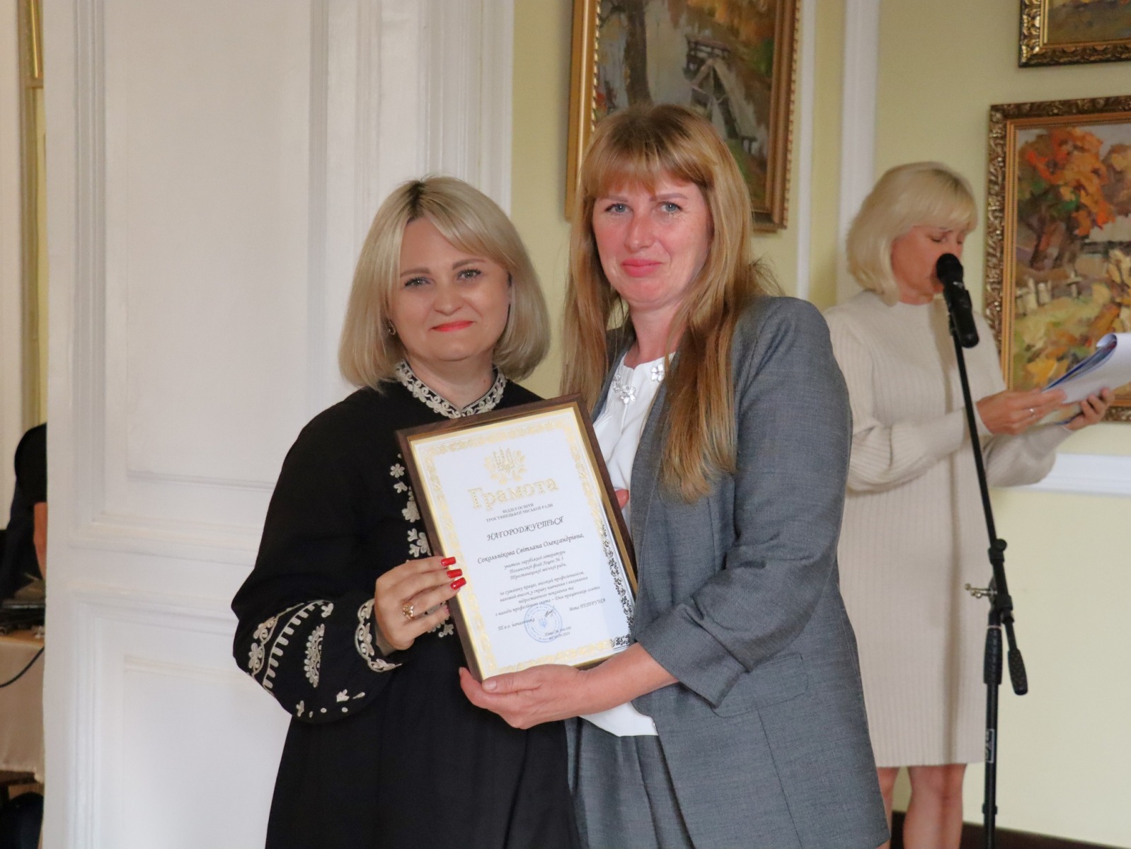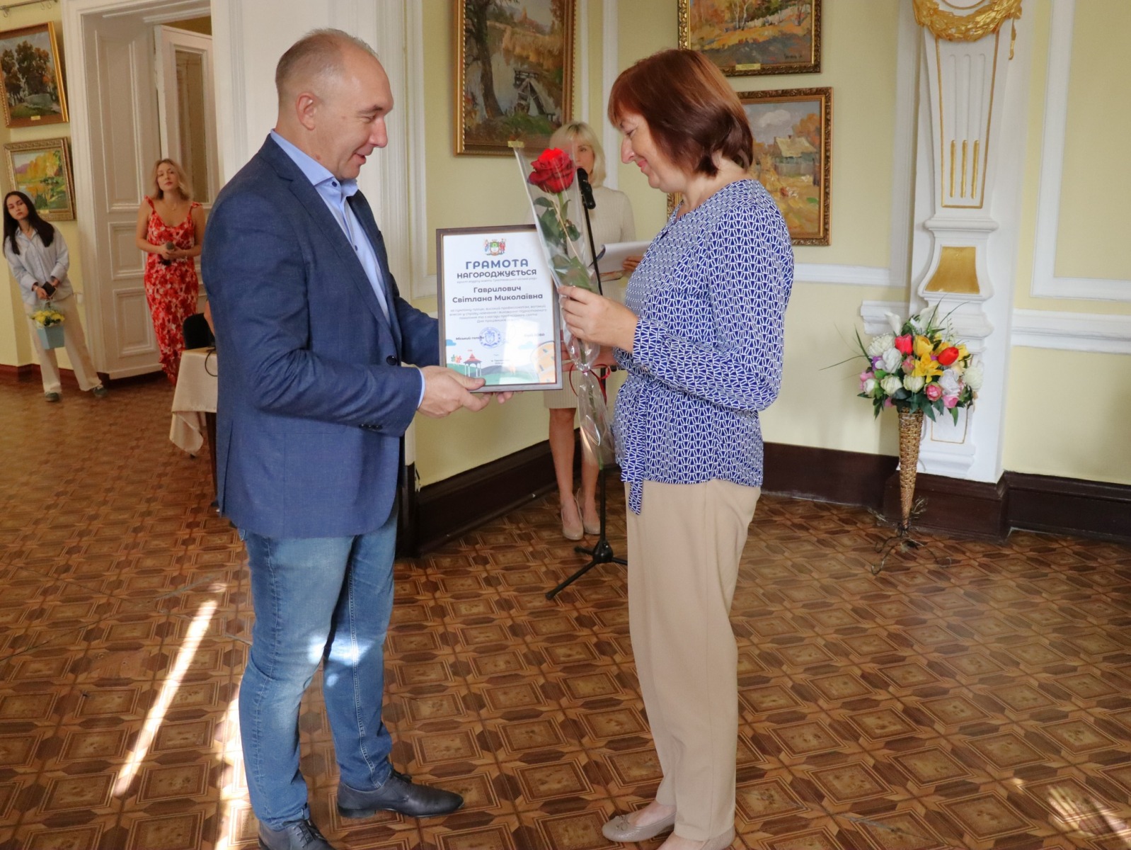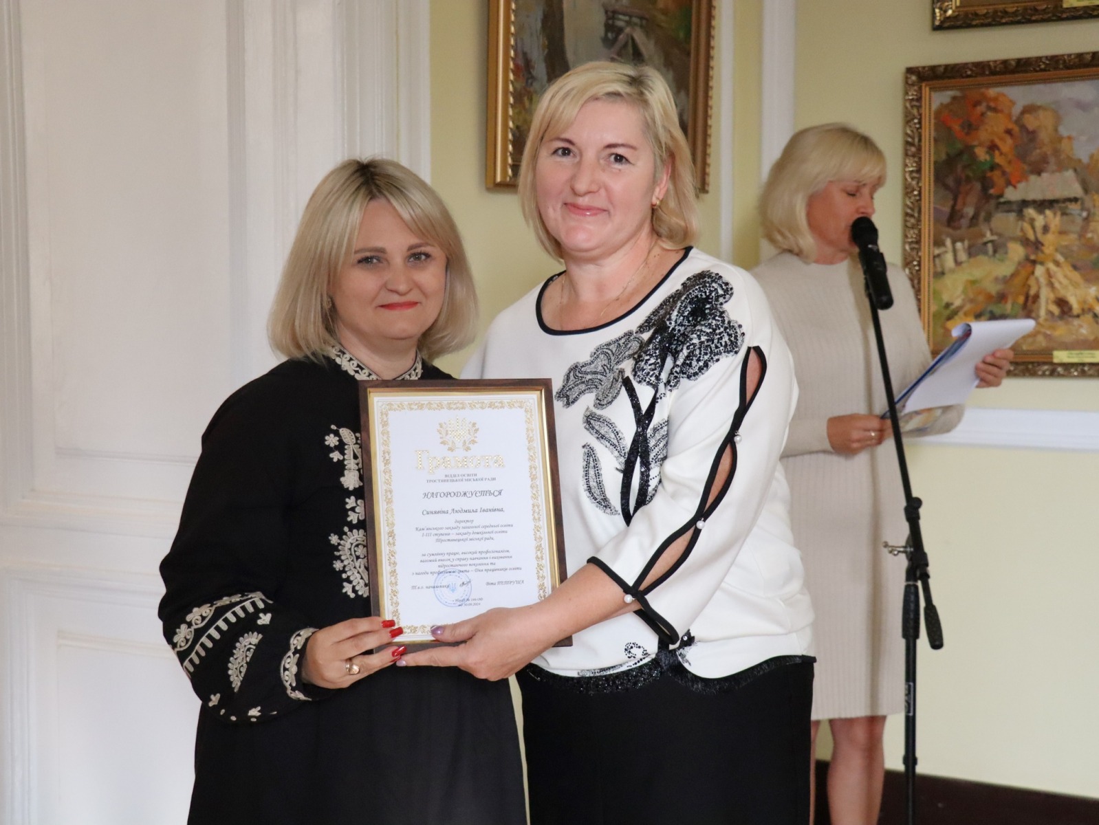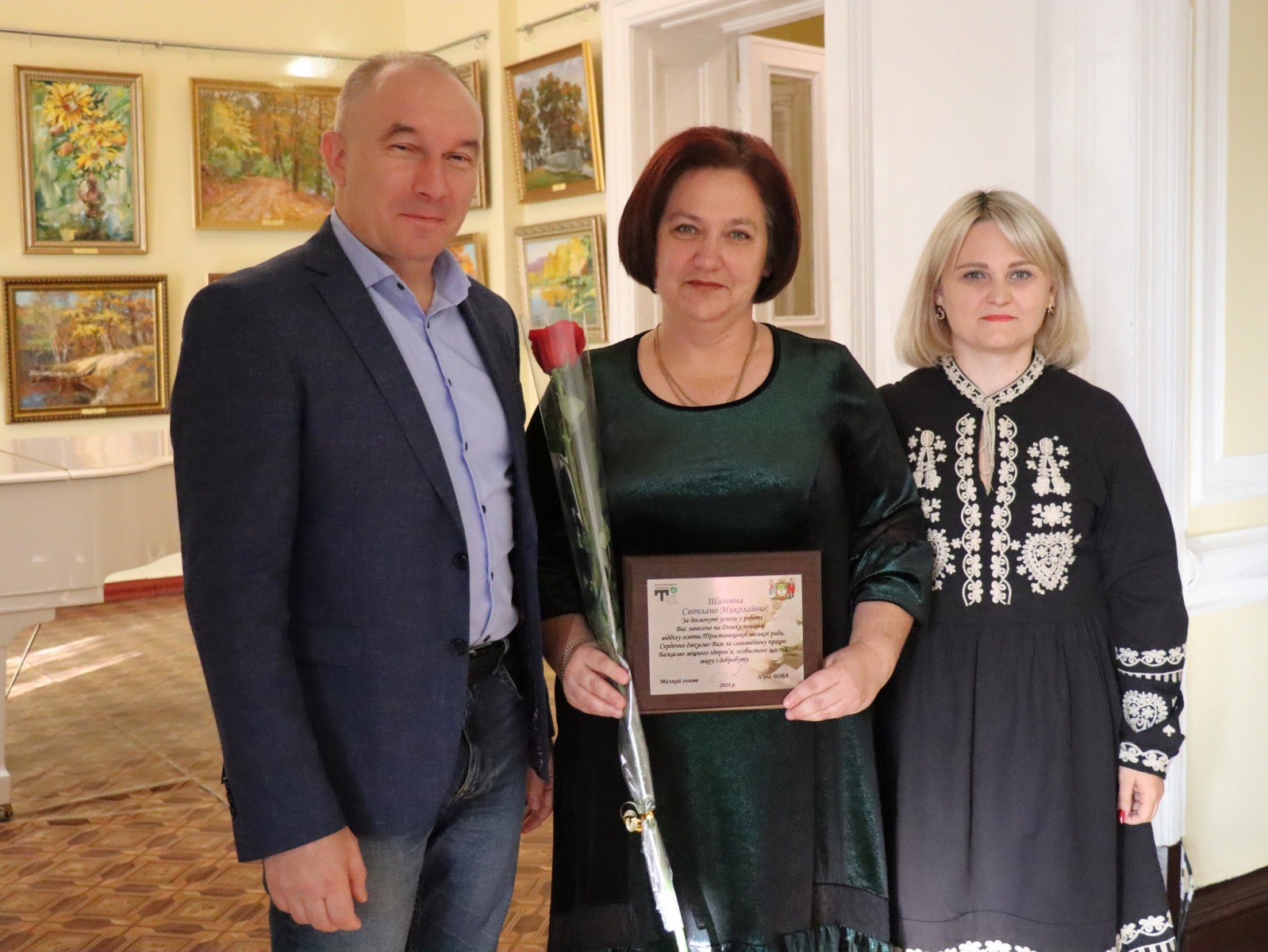 З щирим вітальним словом до них звернувся Юрій Бова, Тростянецький міський голова. Він подякував педагогам за стійкість і незламність, за те що під час війни залишилися працювати в Тростянецькій громаді, розташованій неподалік від російського кордону.