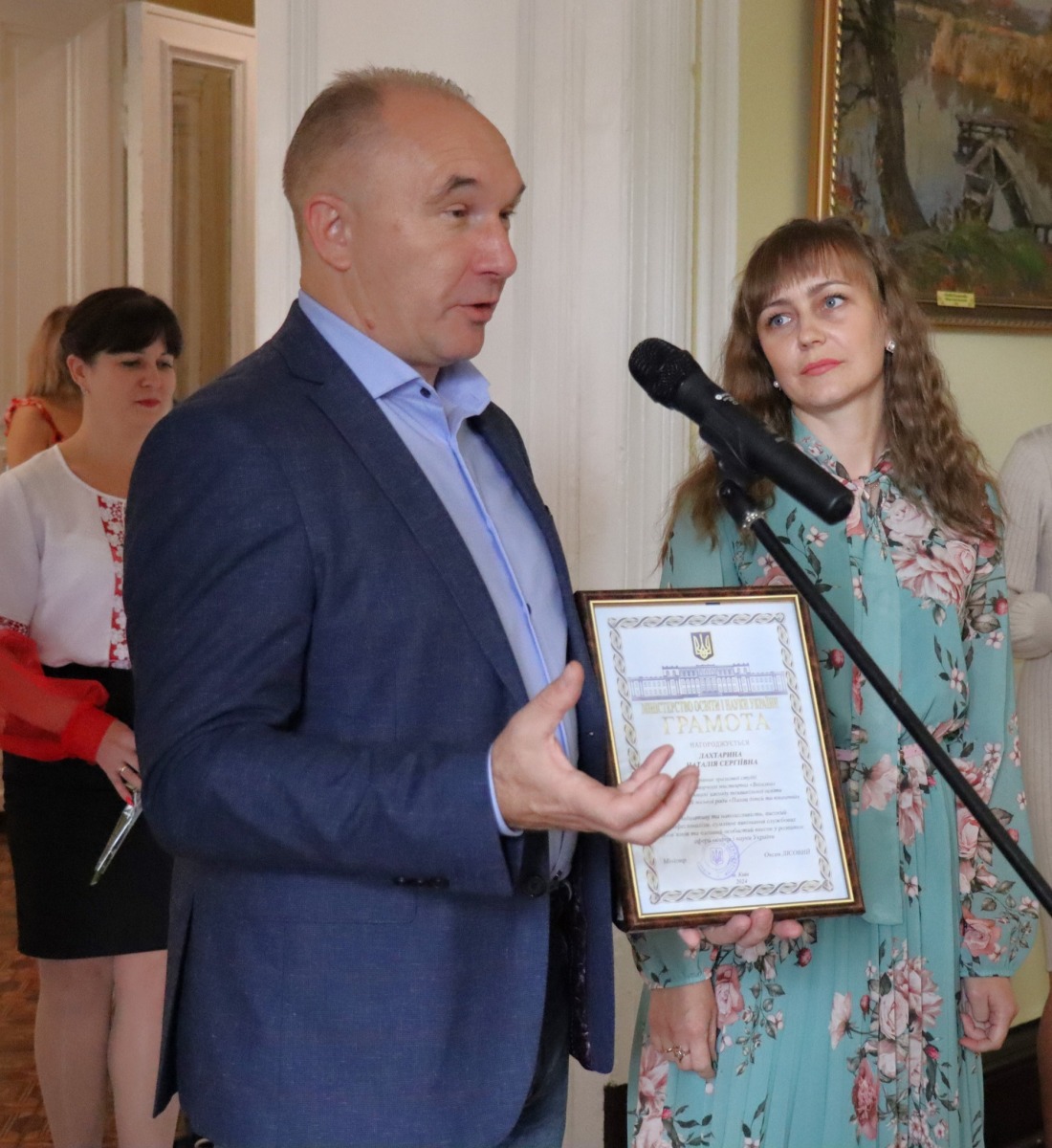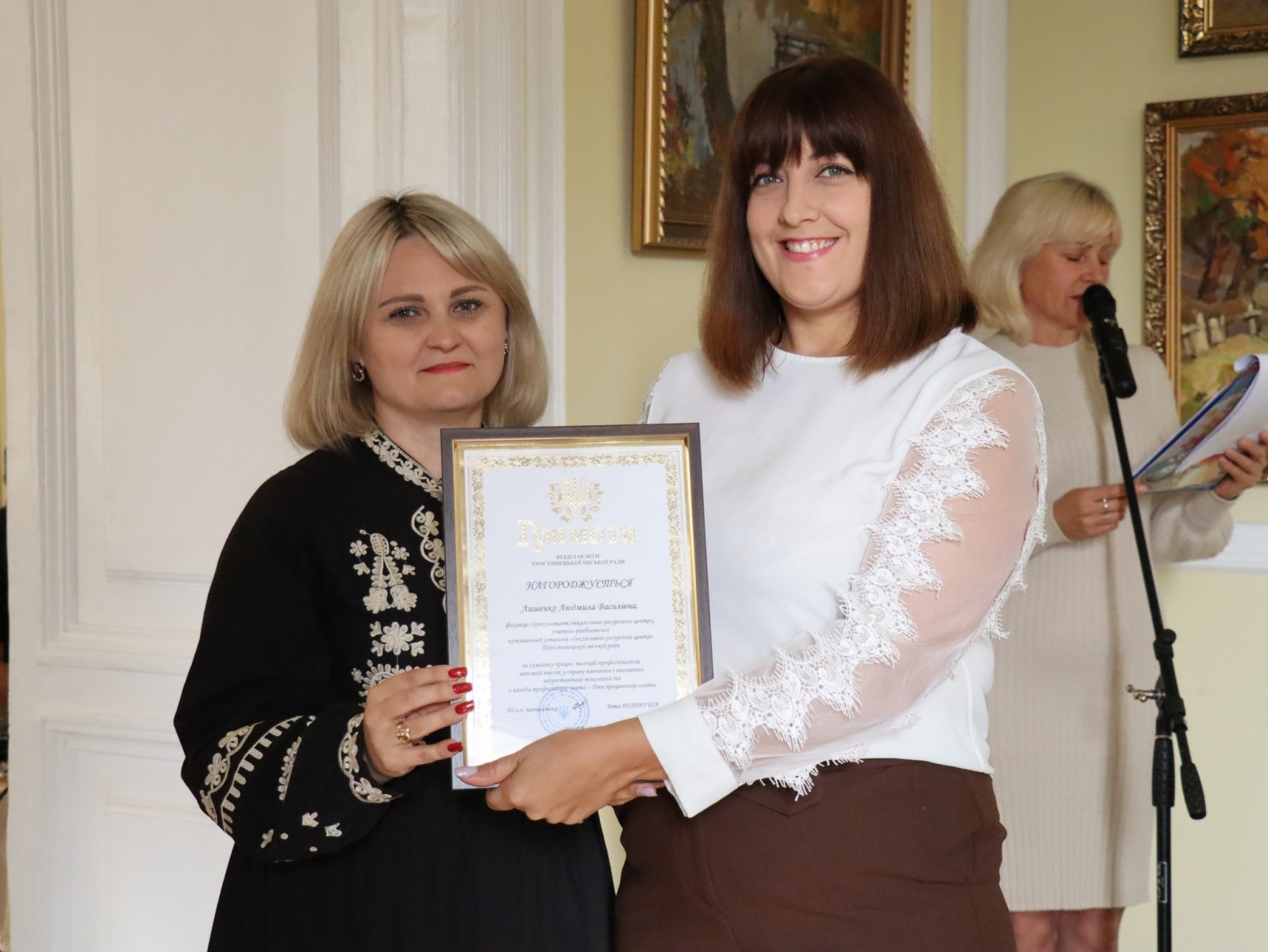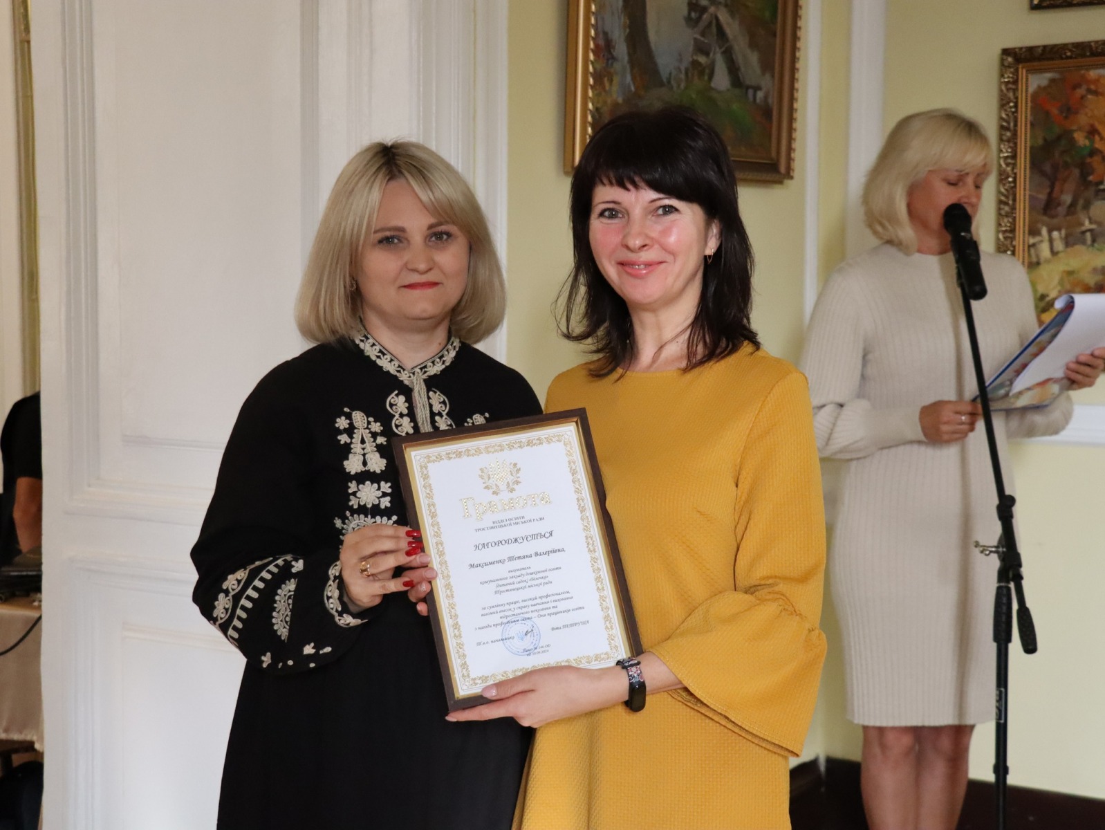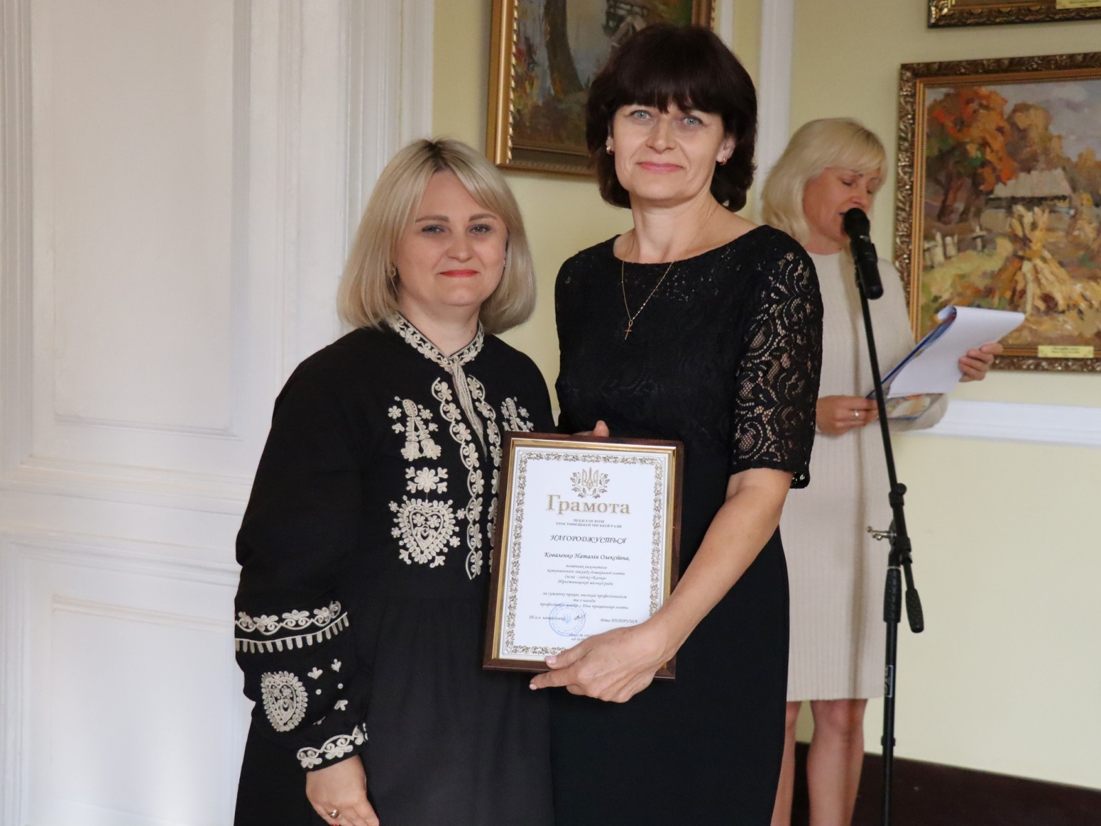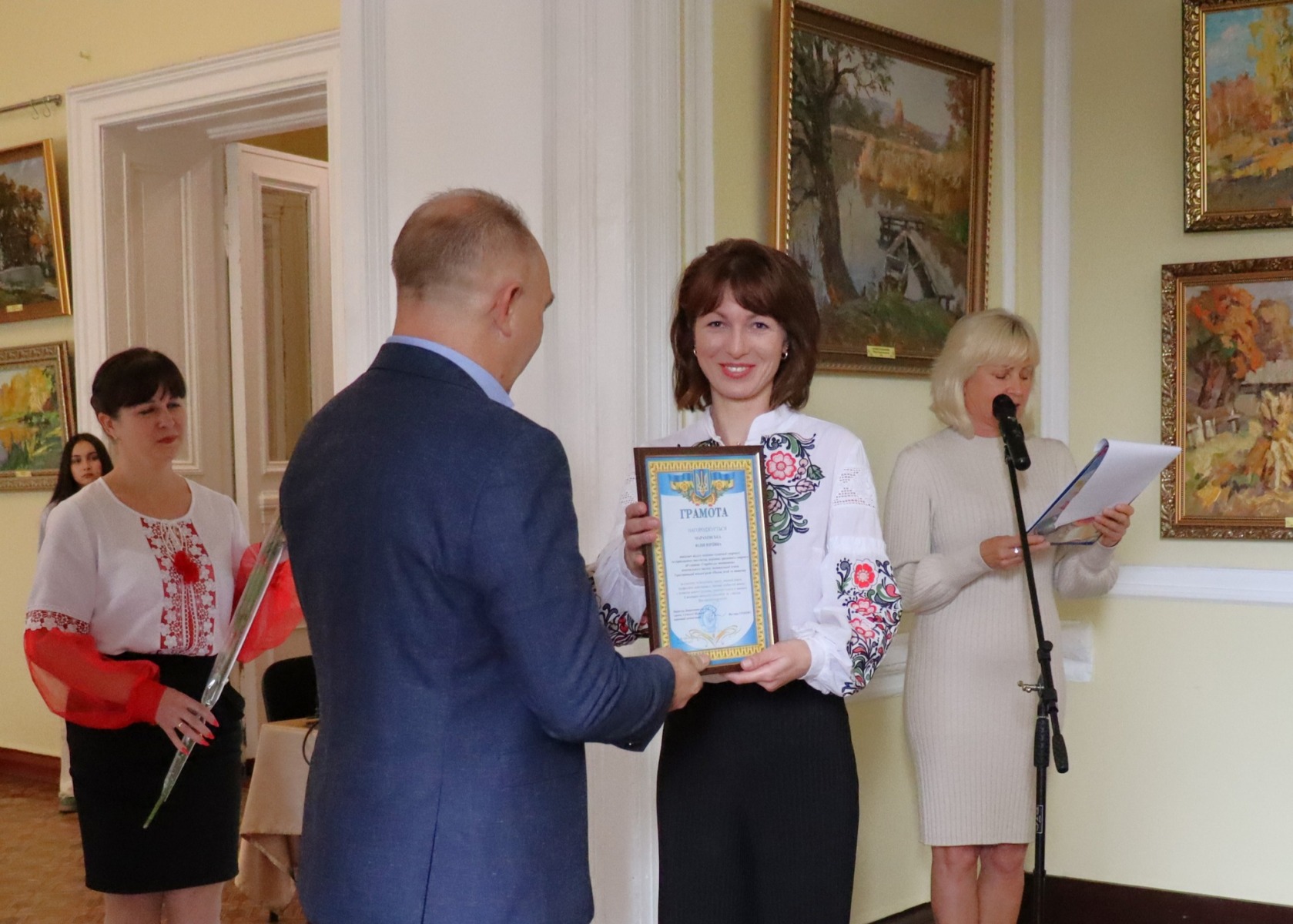 З щирим вітальним словом до них звернувся Юрій Бова, Тростянецький міський голова. Він подякував педагогам за стійкість і незламність, за те що під час війни залишилися працювати в Тростянецькій громаді, розташованій неподалік від російського кордону.