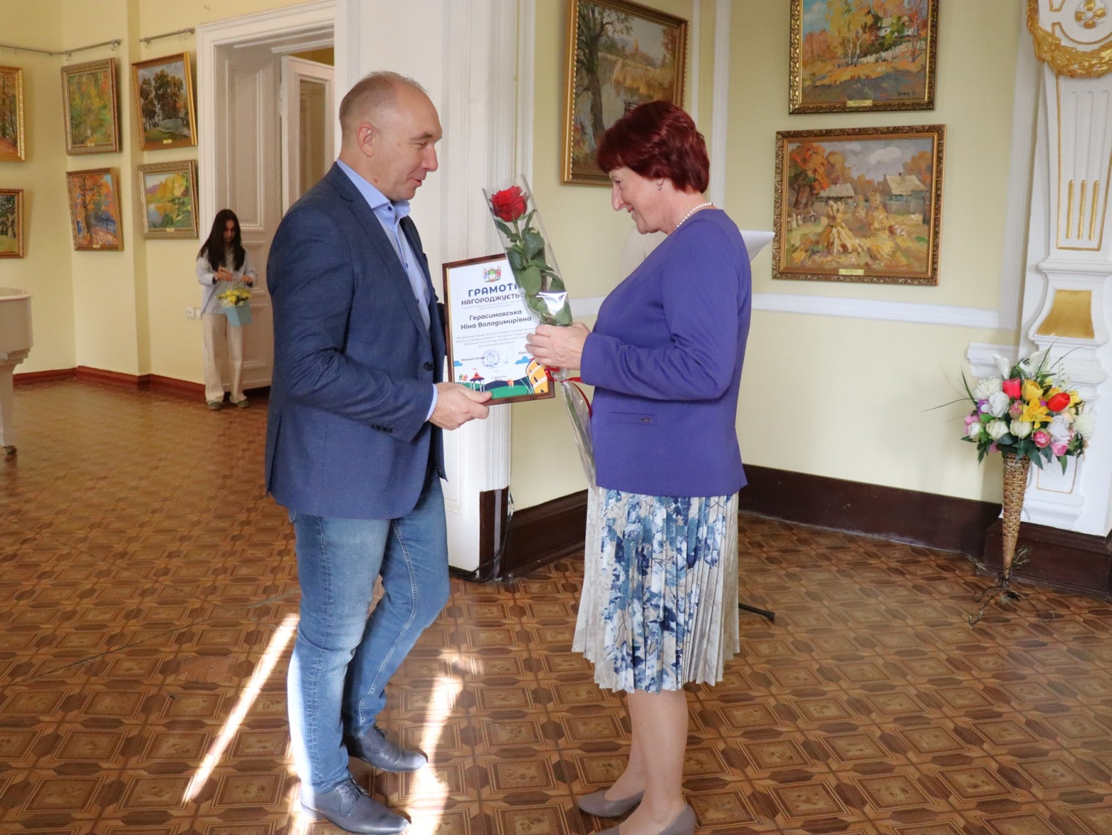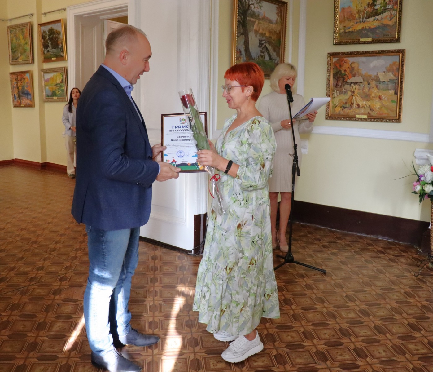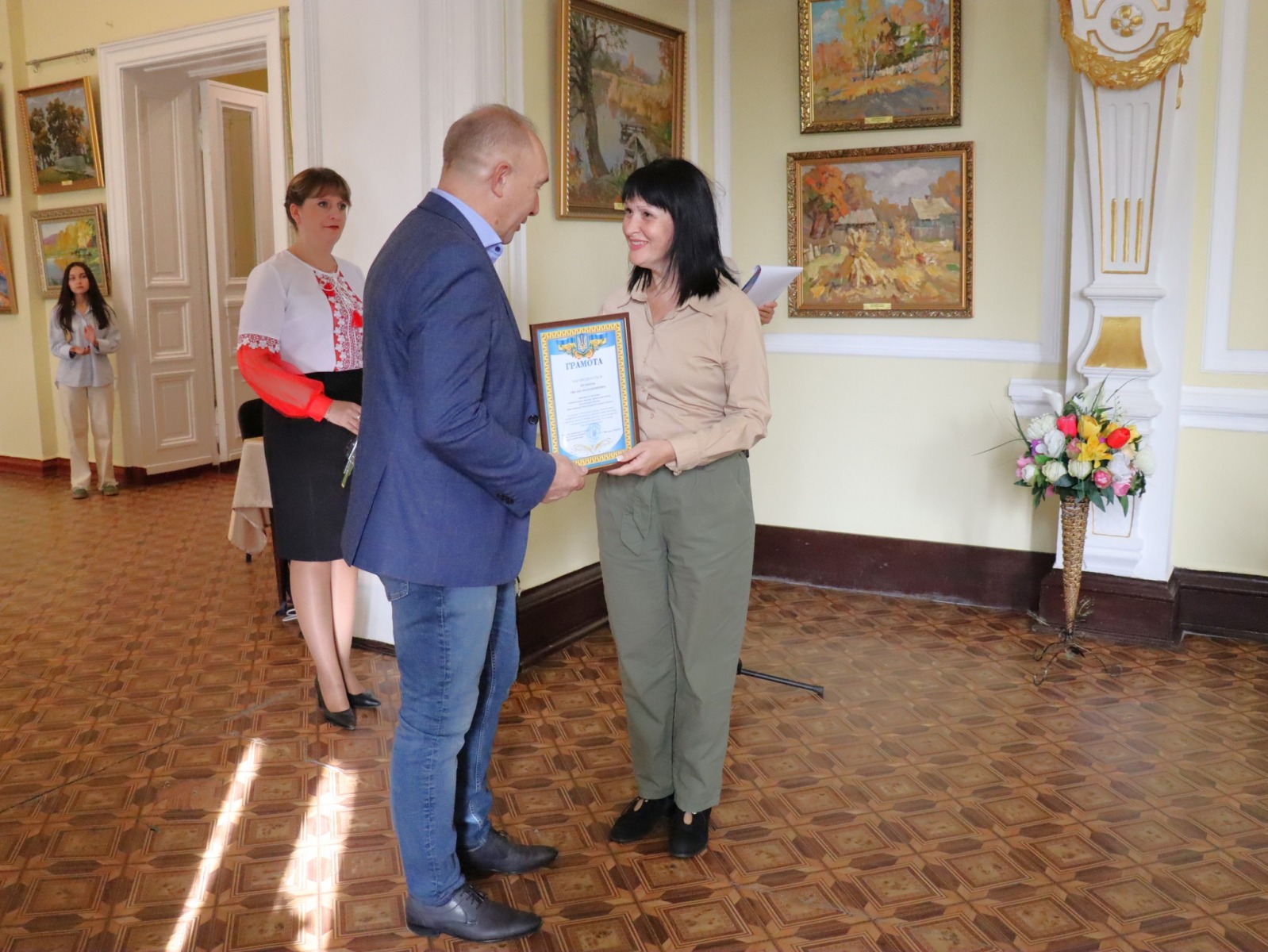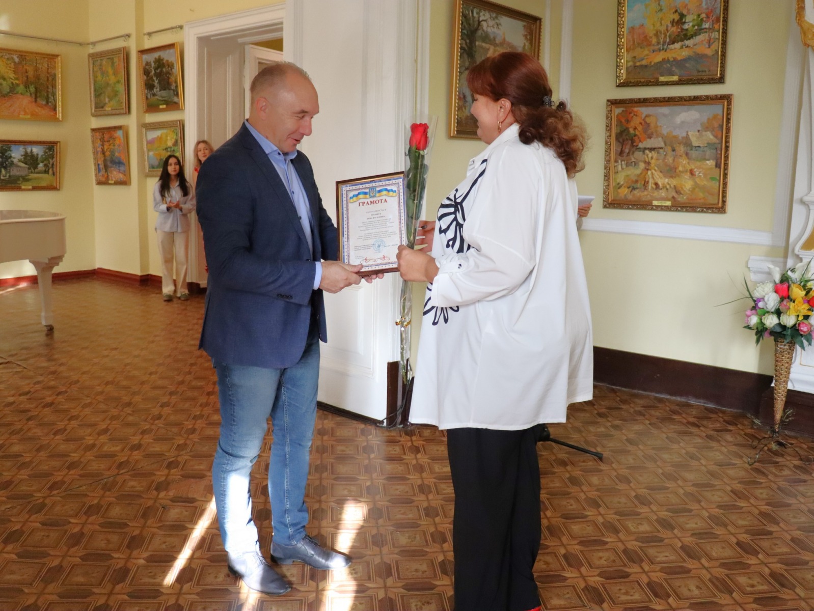 З щирим вітальним словом до них звернувся Юрій Бова, Тростянецький міський голова. Він подякував педагогам за стійкість і незламність, за те що під час війни залишилися працювати в Тростянецькій громаді, розташованій неподалік від російського кордону.