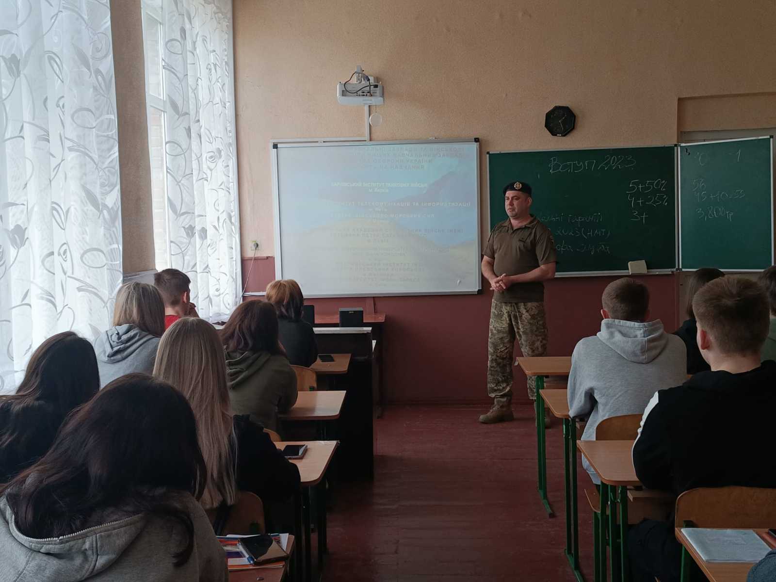 27 квітня 2023 року відбулася зустріч учнів 10-11-х класів закладів загальної середньої освіти Тростянецької міської ради з представником військового інституту танкових військ Національного технічного університету «Харківський політехнічний інститут» – майором Сінько Володимиром Володимировичем, який провів військово-професійну агітацію цивільної молоді.