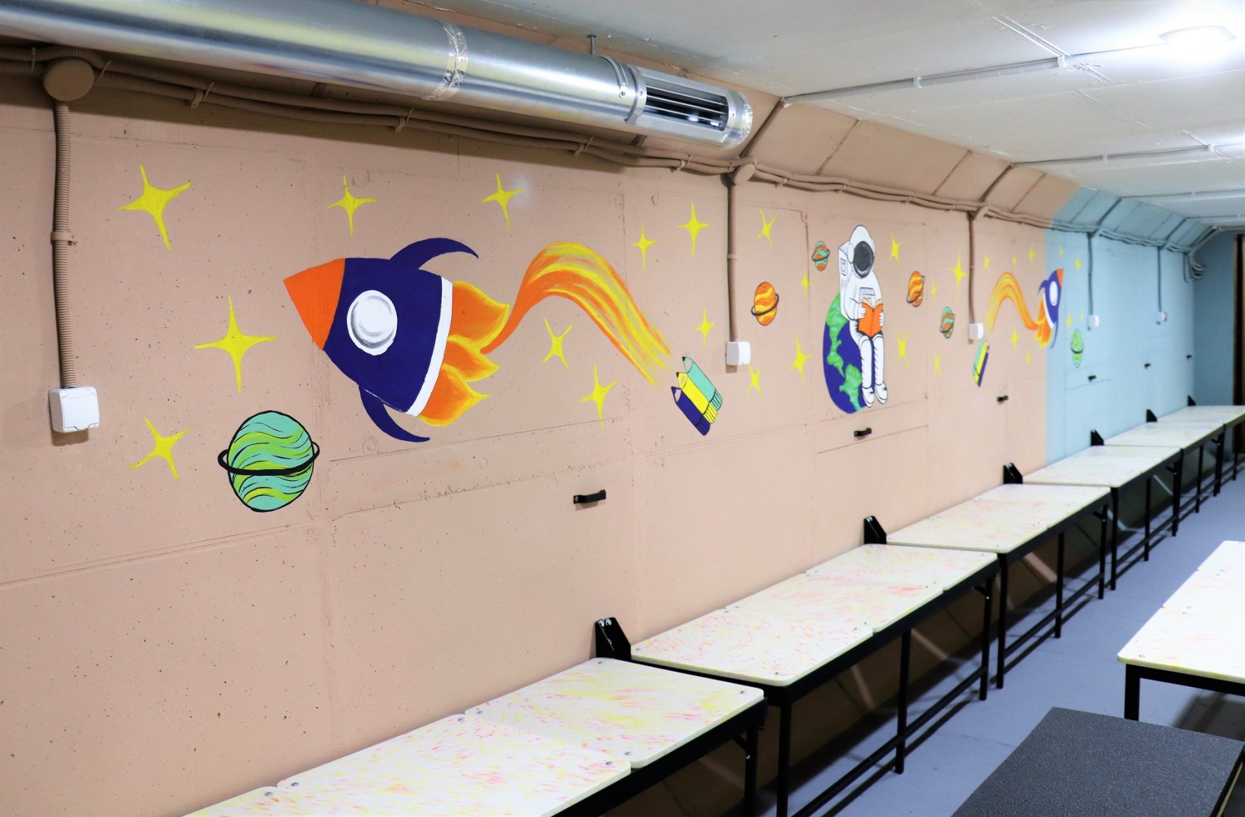 Укриття оснащене за всіма вимогами: має якісне освітлення, систему вентиляції, кондиціонери, санвузли, приєднано до централізованого водопостачання та водовідведення, відповідає протипожежним і санітарно-гігієнічним нормам. До початку навчального року приміщення буде під’єднано й до системи централізованого теплопостачання. Це не просто захисна споруда, а повноцінне середовище, де діти можуть безпечно перебувати під час загрози.