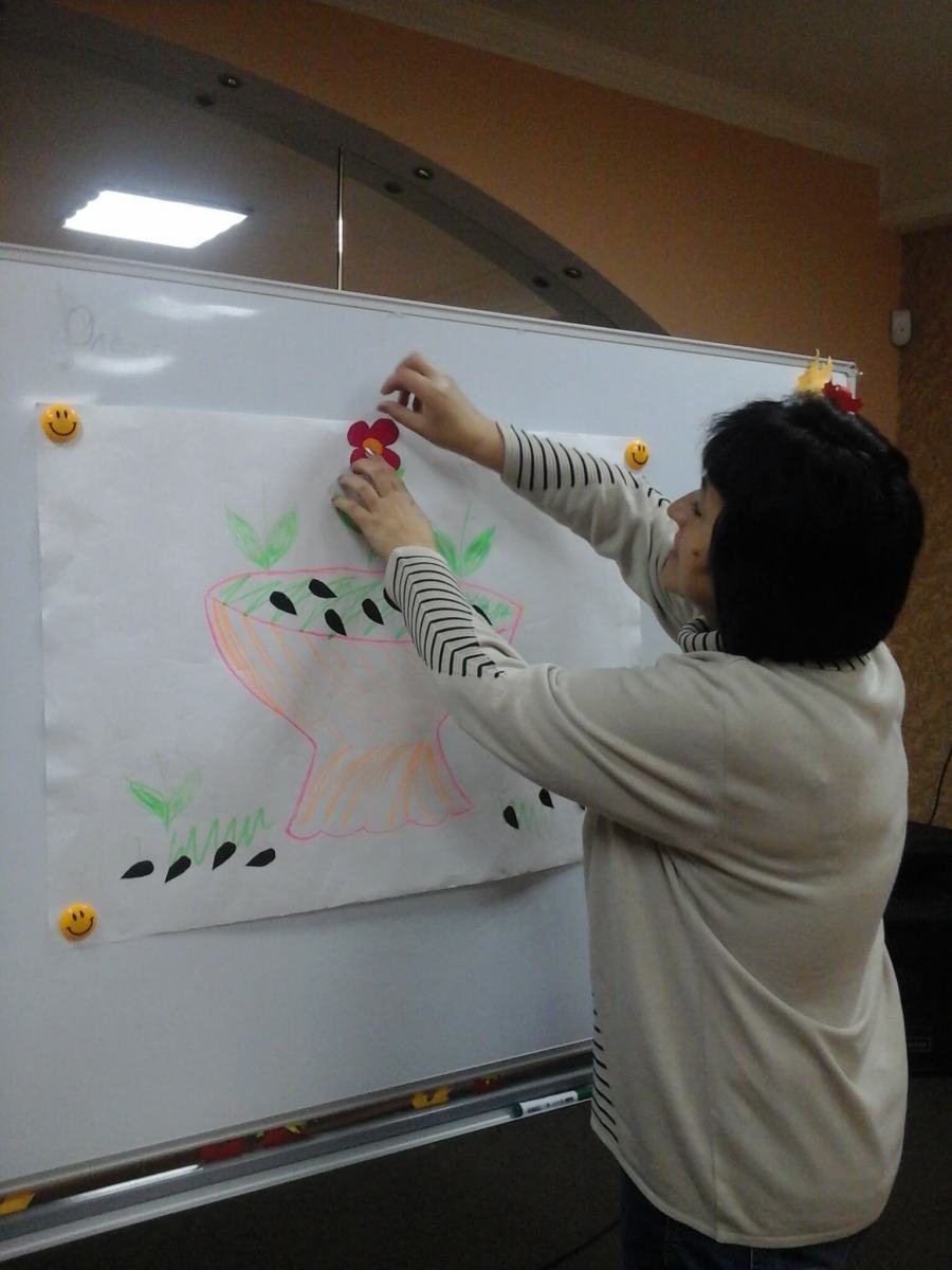 Після теоретичної частини педагоги перейшли до практичних дій. Розглянули, які прийоми рефлексії можна використати на початку уроку з метою установлення емоційного контакту з учнями, а які з них доцільні наприкінці заняття, щоб допомогти визначити ефективність своєї роботи і ступінь засвоєння матеріалу класом. Учителі працювали в парах, була організована робота в групах з використанням сигнальних карток, смайликів, знаків.